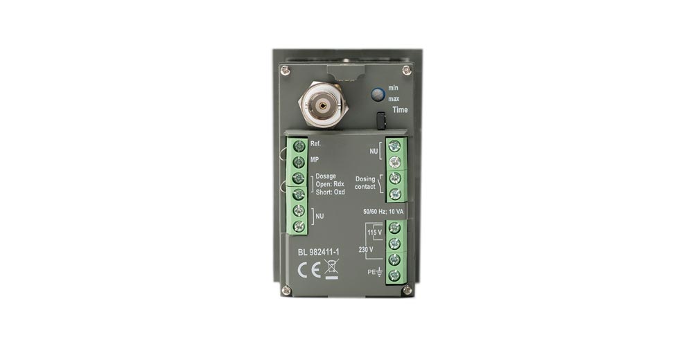 - Dosing Selection: reducing or oxidizing, selectable on the back panel contact open=reductant dosage=relay ON if measure > setpoint contact closed=oxidant dosage=relay ON if measure < setpoint