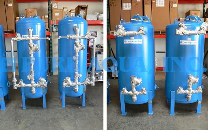Pure Aqua manufactured and supplied a complete multi cell of multi media filtration for a major water treatment company in Kuwait, total of 8 tanks 60″X60″.